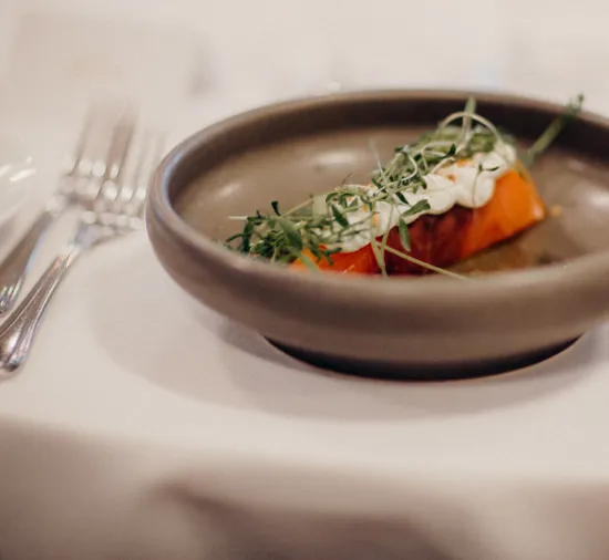 En complément de l’ardoise, notre cheffe propose un menu plus élaboré. Des produits nobles, cuisinés avec justesse, pour une expérience tout en subtilité.